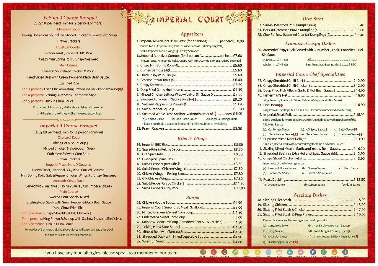 Imperial Court is a Chinese restaurant that was established in Lowton in 2004 and has been serving locals for over a decade. Serving a wide range of authentic Chinese cuisines. Dishes are prepared by our chefs using fresh ingredients to ensure the best quality and flavours.